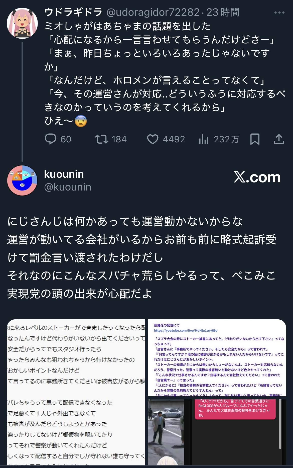 | … | 1025/10/31(金)00:40:14No.1367942542そうだねx18過去に略式起訴されたのにスパチャでハラスメントやって荒らしてんの押さえられてるなら言われて当然なんじゃない? |