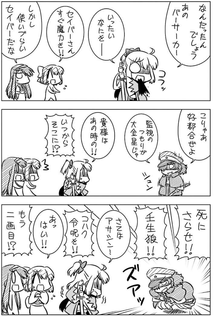 | … | 8225/10/31(金)12:18:26No.1368024528+>でもセイバーがアサシンに正面から負けそうになるんじゃないよ! |