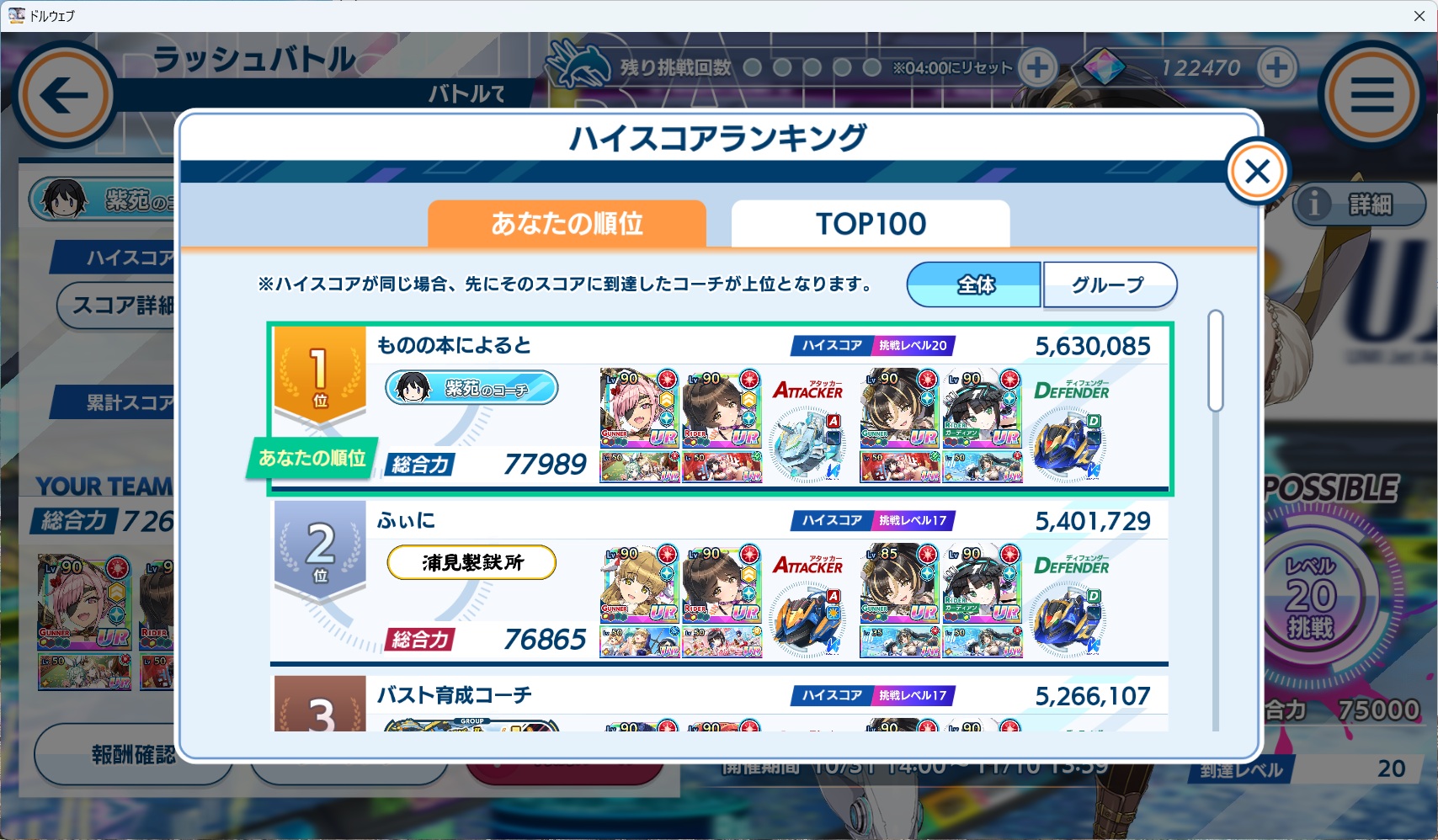 | … | 3925/11/01(土)02:23:27No.1368262715+ラッシュバトルハードでクリアして順位6500位ってかなりみんな苦労してるっぽいズリ |