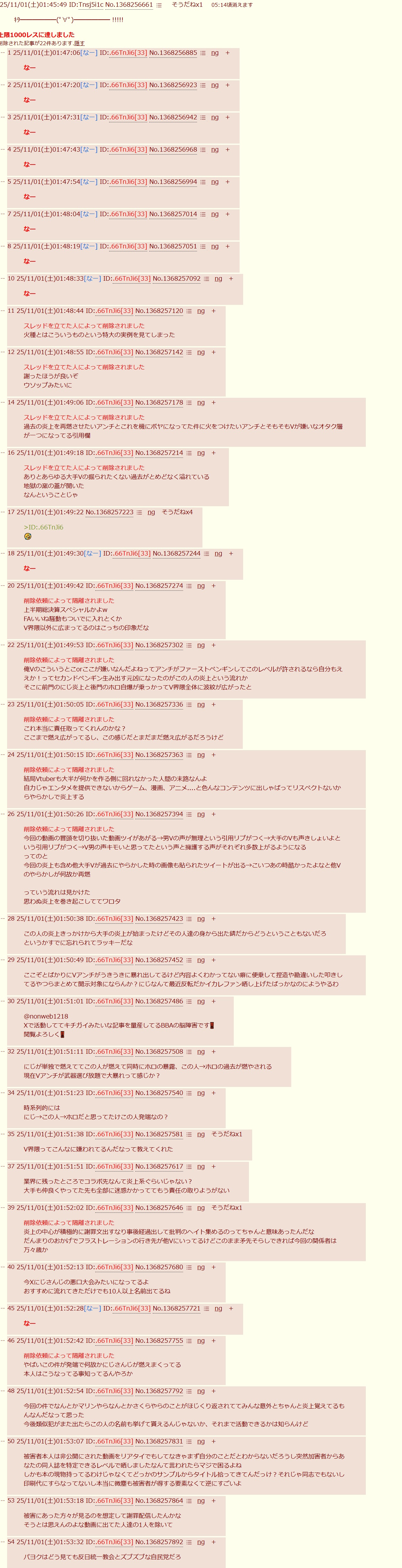| … | 625/11/01(土)02:41:50No.1368265182+報告して垢殺してもらうか |