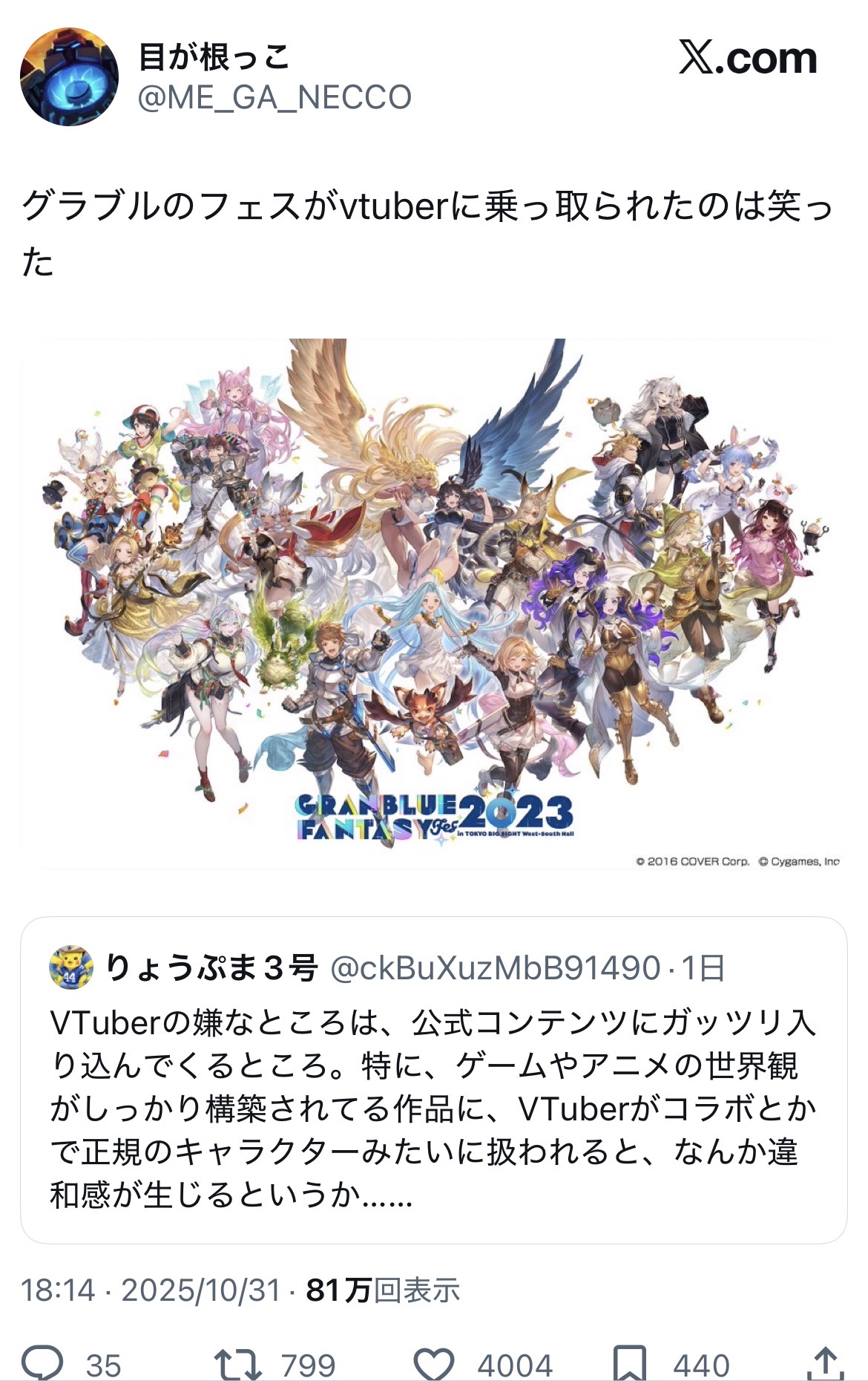 | … | 225/11/01(土)17:32:17No.1368423615そうだねx71グラブルフェスのあれは特殊すぎて一般的なコラボの是非では語れないと思う |