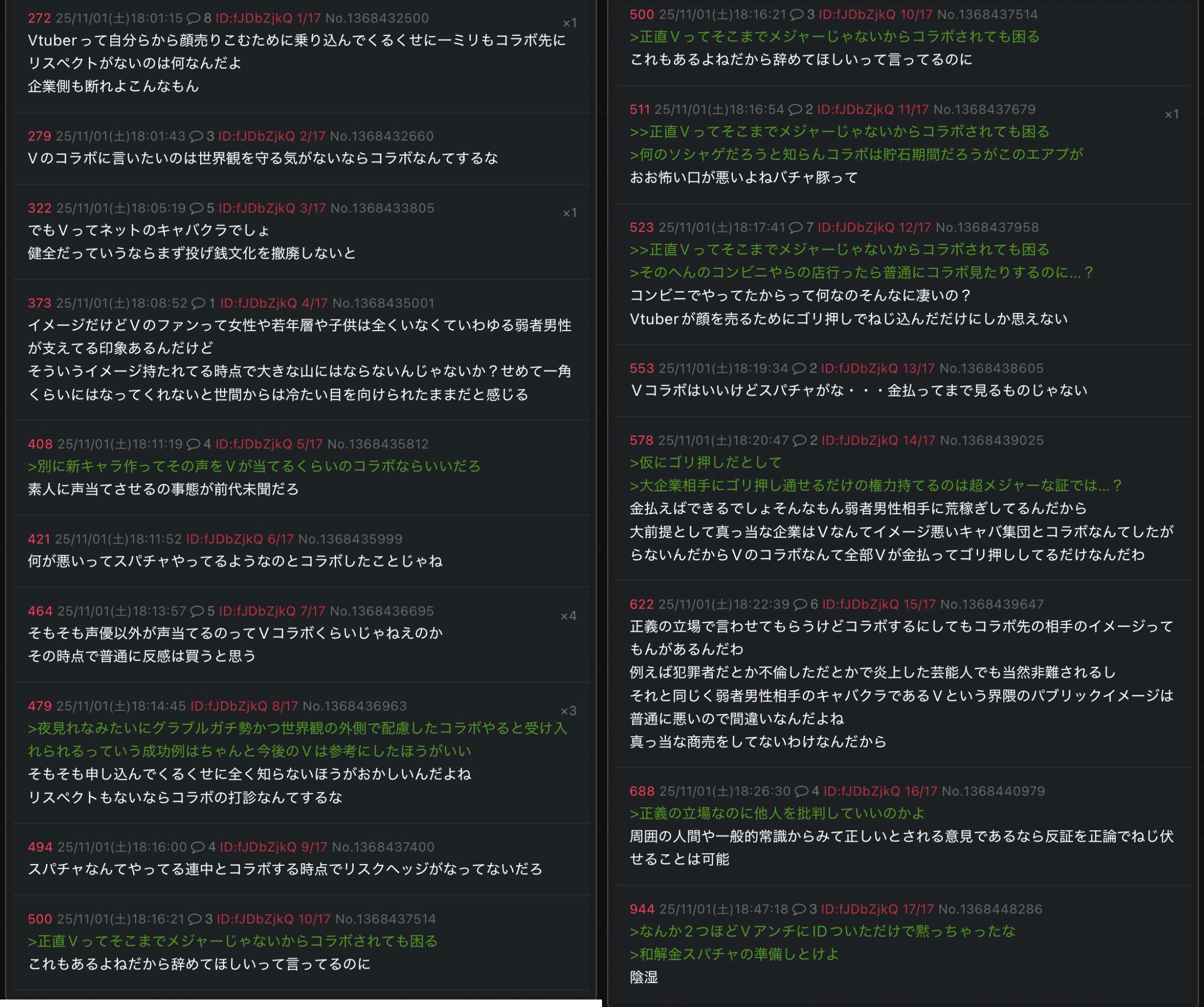 | … | 94125/11/01(土)18:47:06No.1368448219+>>なんか2つほどVアンチにIDついただけで黙っちゃったな |