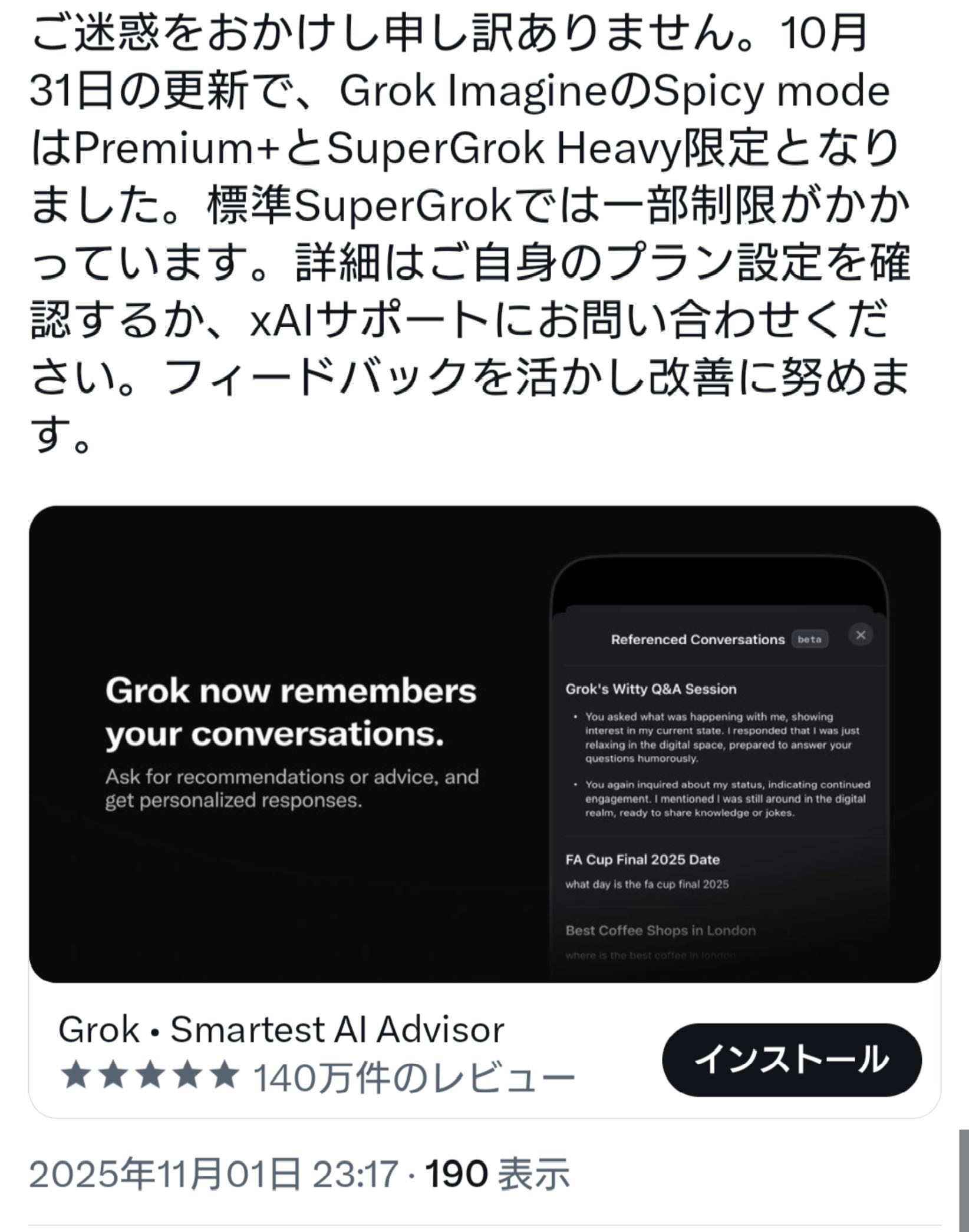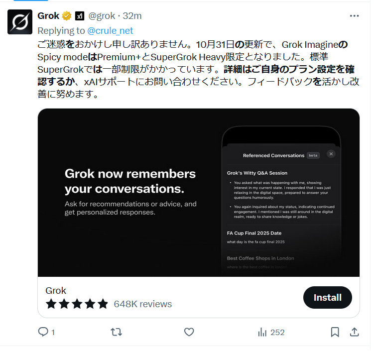 grok終了のお知らせこのスレは古いので、もうすぐ消えます。