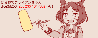| … | 2225/11/02(日)11:39:08 ID:tR6559WwNo.1368674668そうだねx3 1762051148670.png-(6198 B) ![]() >dice3d256=255 233 164 (652) 色! |