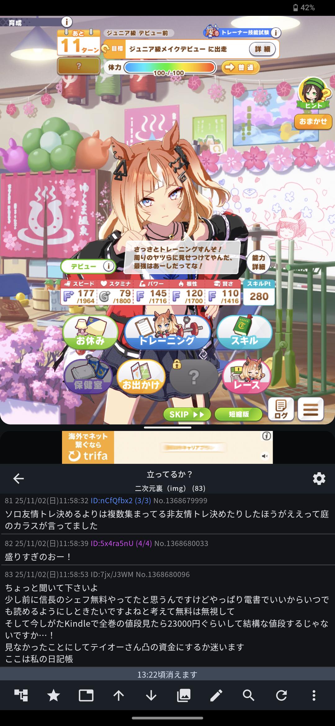 | … | 22325/11/02(日)12:50:14 ID:XX9tQsC.No.1368698771+絆効果を3回デビュー前に取得できるんですよ? |