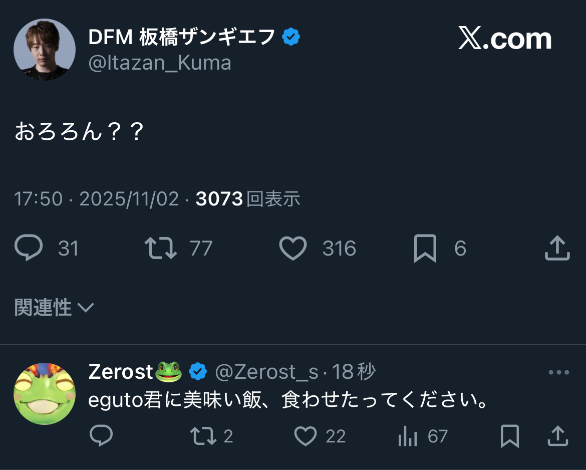 リジェクトからも祝福の声とegutoに飯奢れのお言葉です