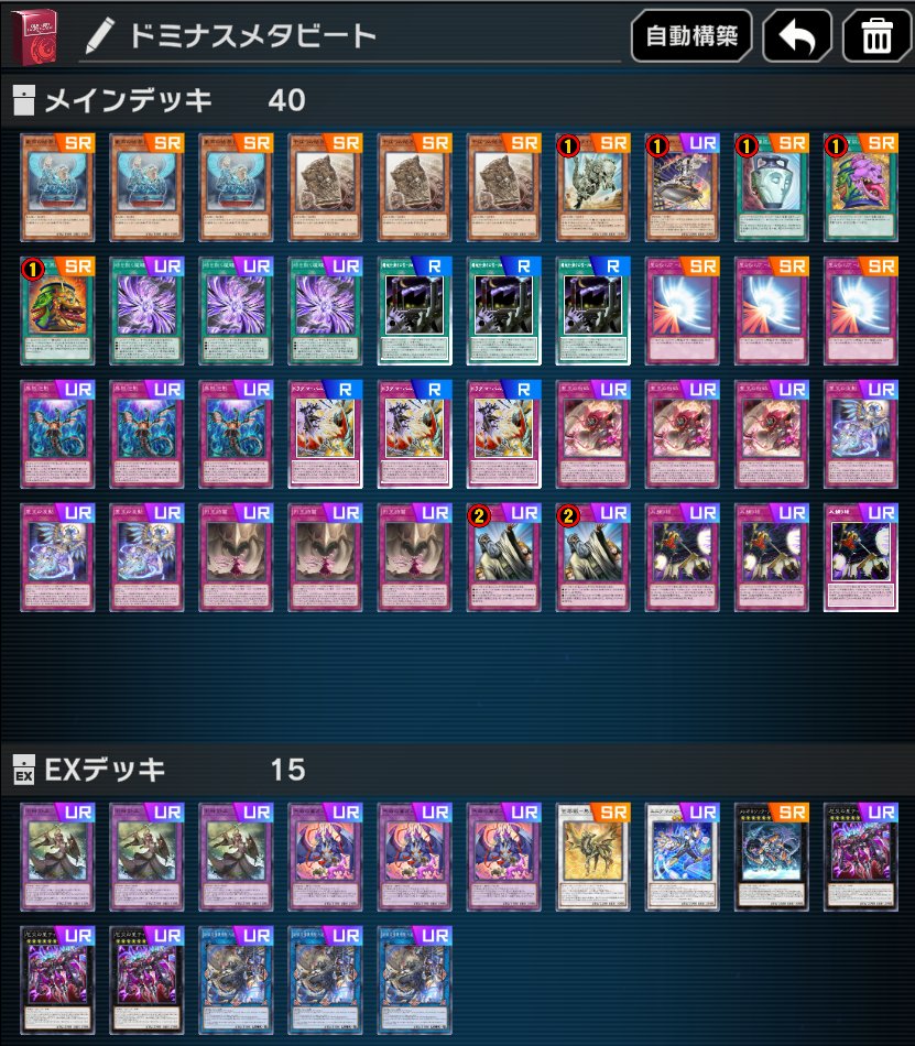 | … | 9225/11/03(月)13:36:20No.1369082476+咎が強いから神罠と統括者突っ込んで相性のいいリジェネシス入れて…ってやってるとドミナス関連が抜けた |