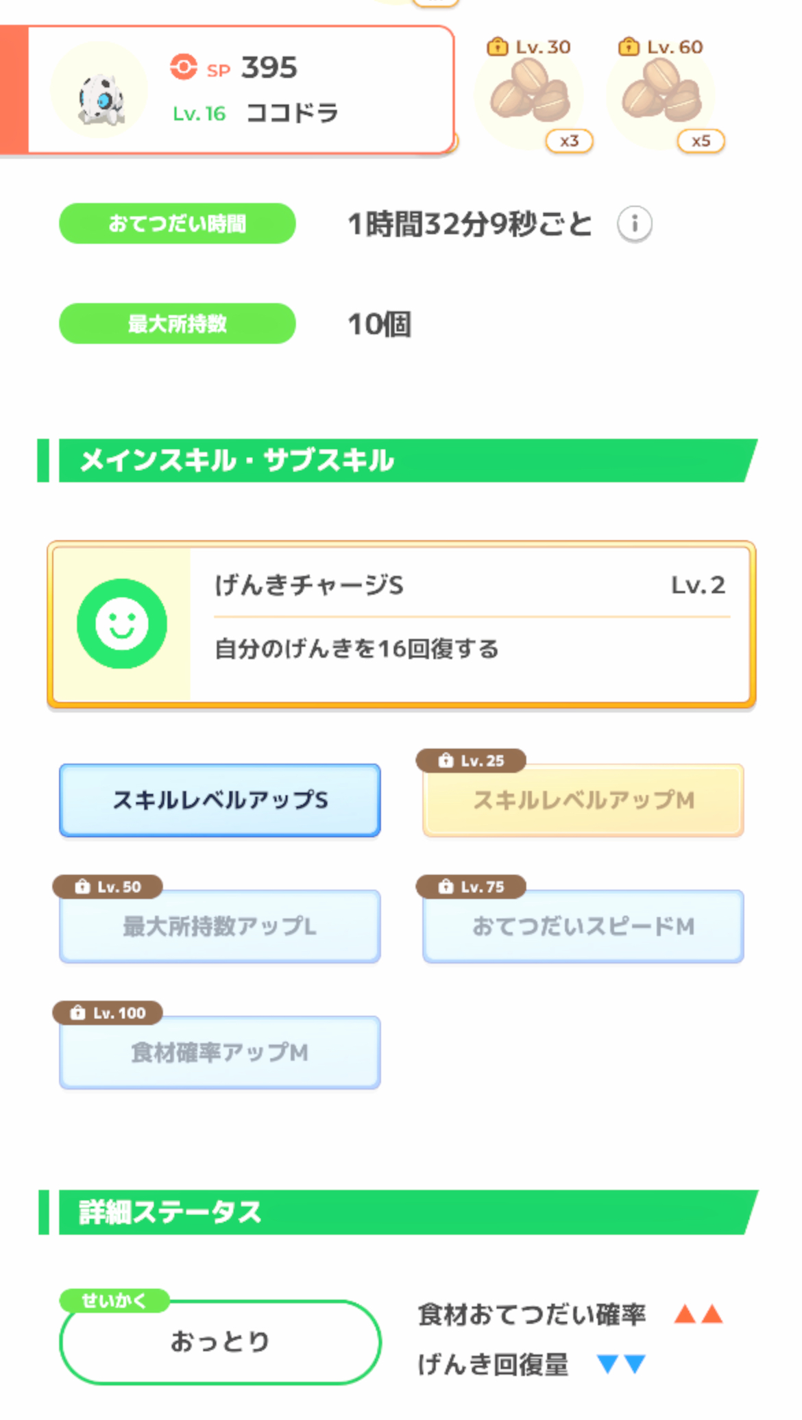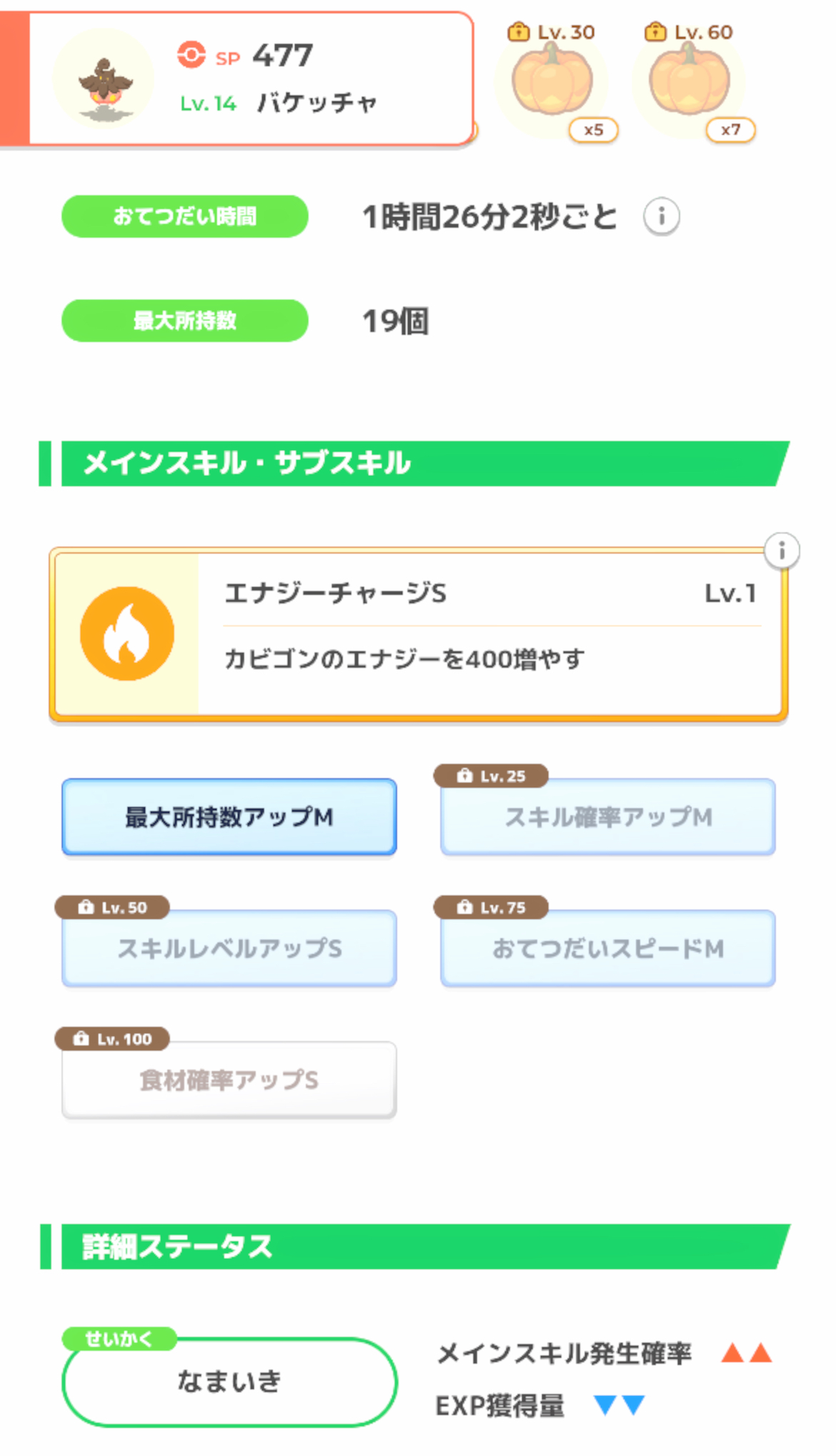 | … | 625/11/04(火)00:04:25No.1369294295+>小玉種のAAAで所持数Lがレベル10にあって性格が食材ダウンで食材確率Mのみがある(レベル100)奴捕まえました |