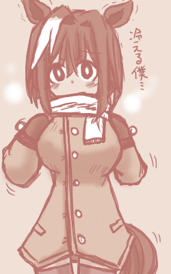 | … | 31525/11/04(火)00:34:10 ID:3/As5FDINo.1369303769+>マフラー巻いて横側の髪がちょっと膨らんでるウマ娘ください |