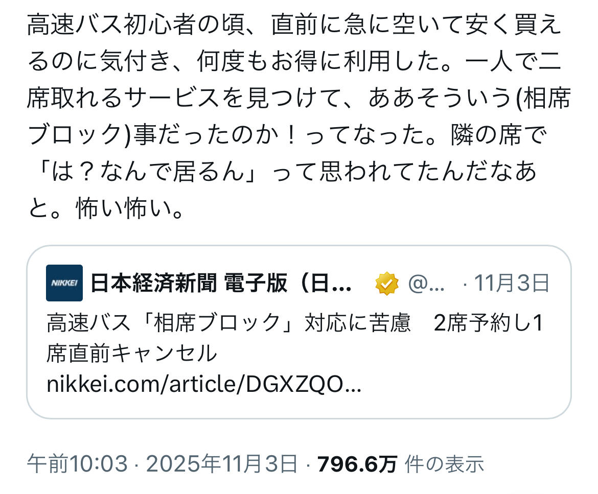 バス乗るのが好き、って自分みたいなのもいるのでWシート予約はたまに使う