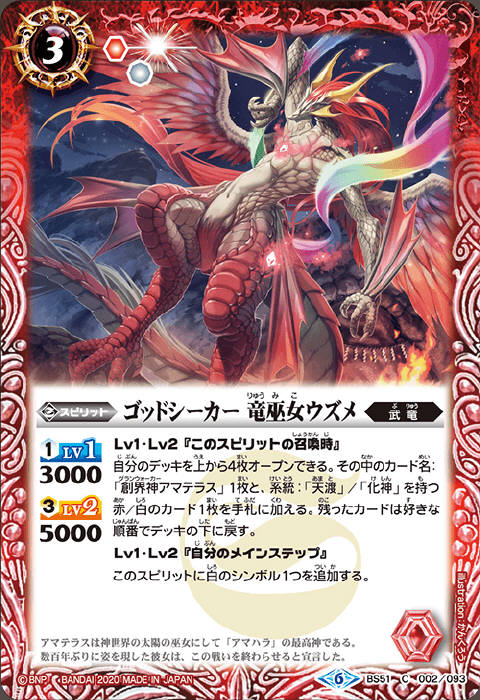 | … | 9825/11/04(火)21:42:41No.1369536204+俺がやってるTCGにもアメノウズメモチーフカードあるけどちゃんと全裸だった |