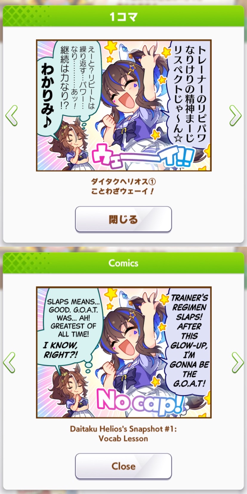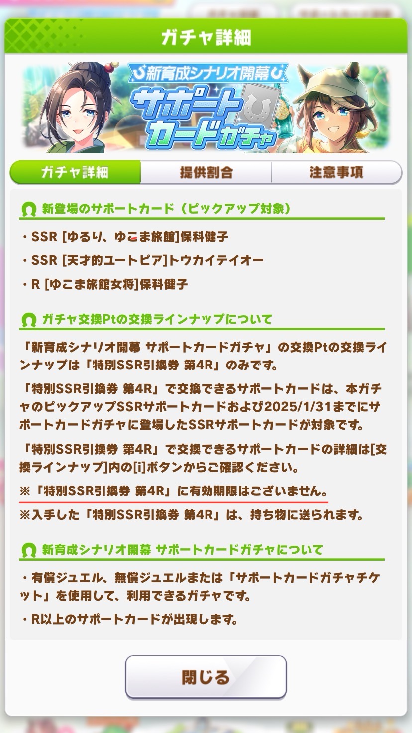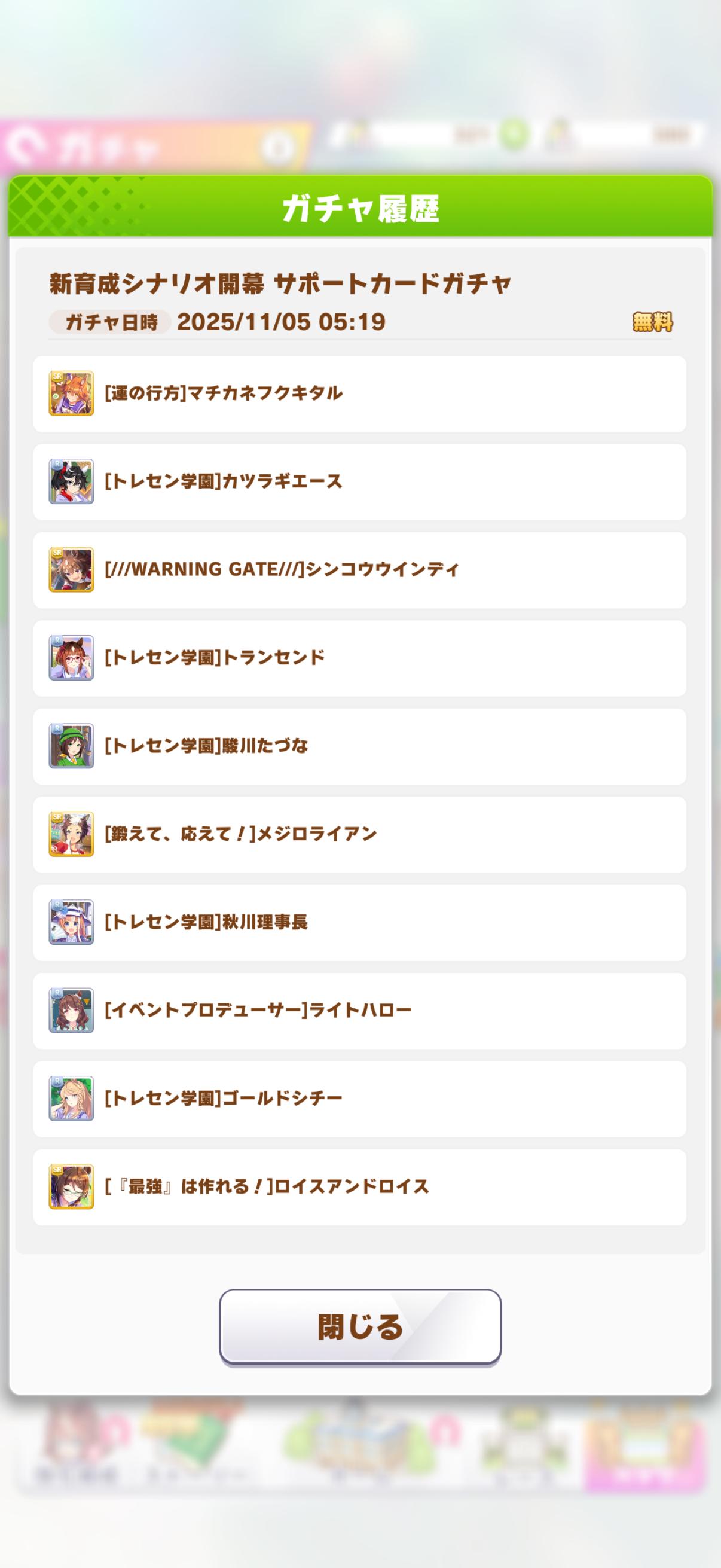 | … | 15025/11/05(水)05:11:12 ID:ALv6Q1ooNo.1369618029+チケと貯めてた石合わせて2天して交換分含めて女将1凸テイオーさん完凸にしました |