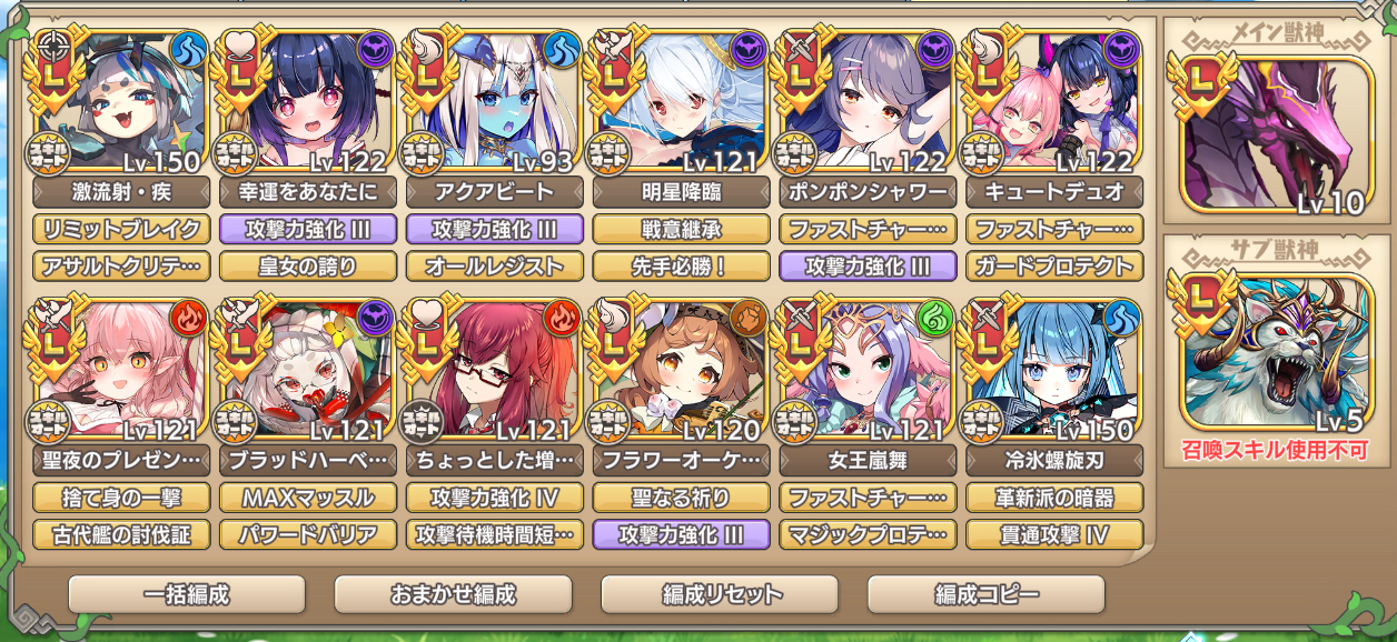 ラキオンパーティバフ要員色々詰めこんだら編成バフ担当が入らなくなったわん