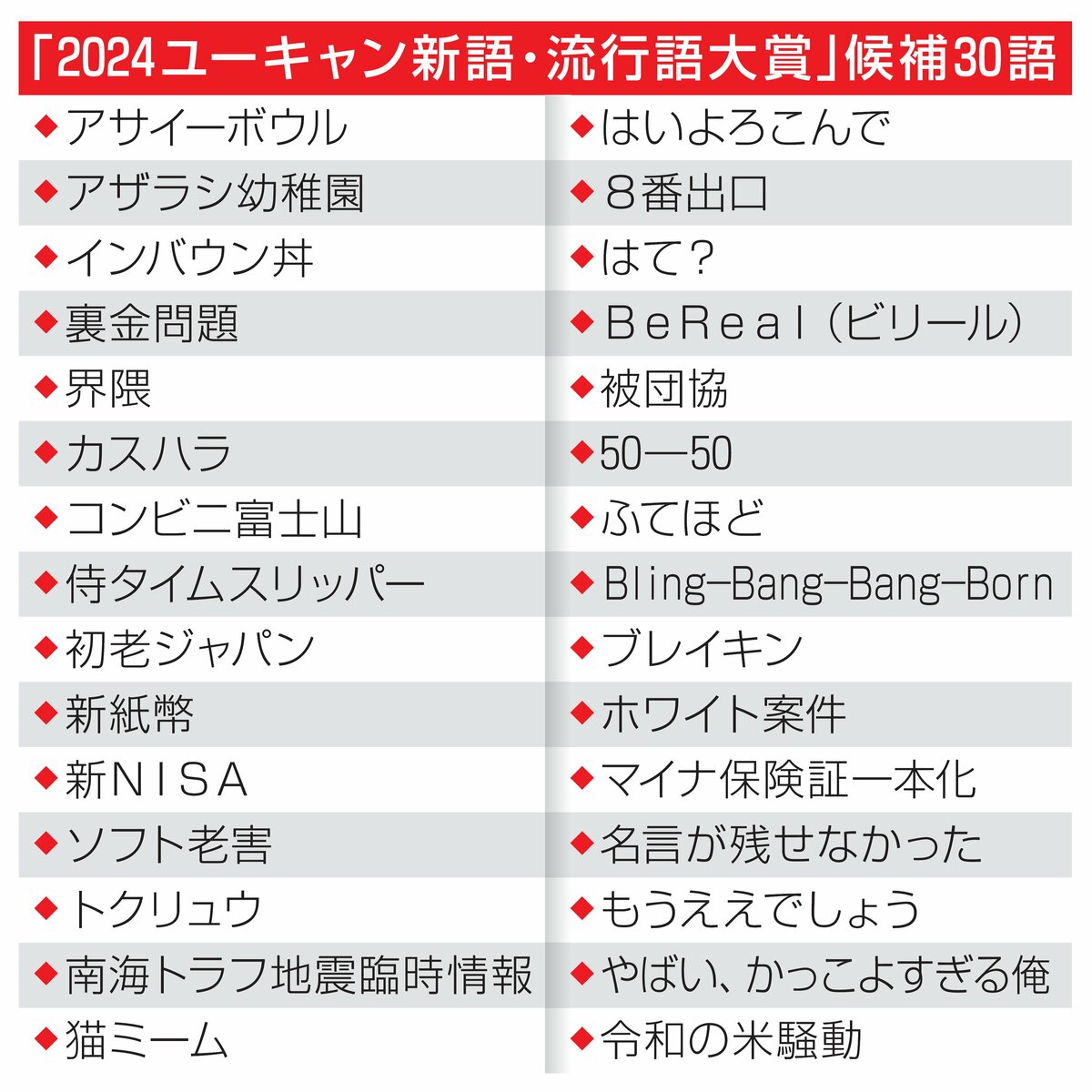 新語・流行語大賞のノミネート30語が発表されたよこのスレは古いので、もうすぐ消えます。