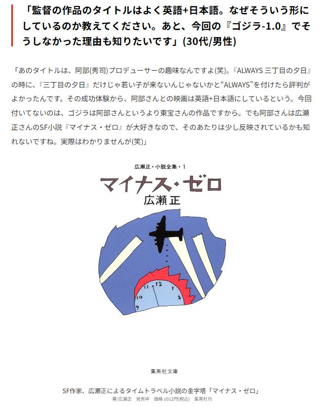 >東宝としては単なる続編ではなく声明的な作品としてマイナスゼロを位置づけてるとのことなので敷島家とゴジラの因縁に終始しなさそうではある