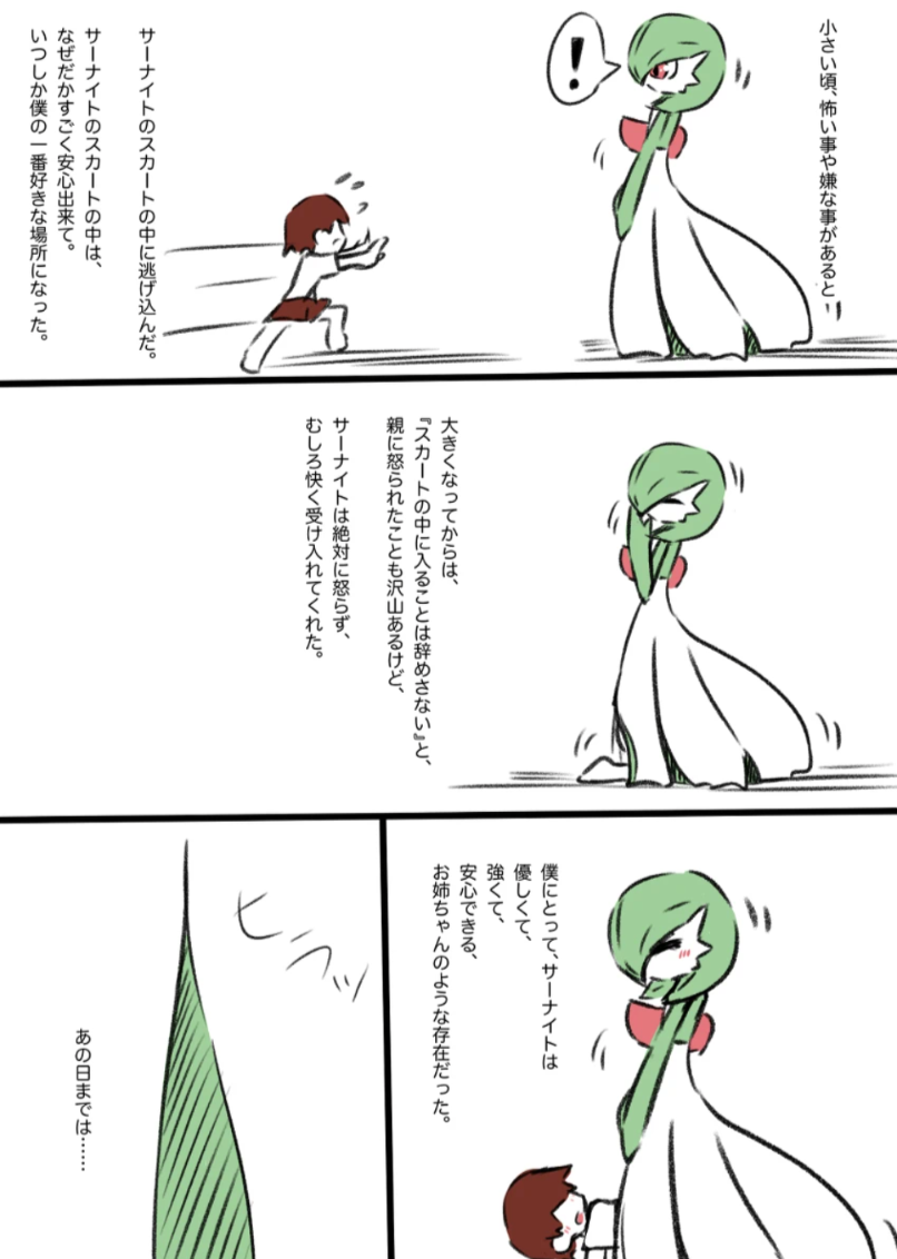 | … | 625/11/05(水)22:15:19No.1369835131そうだねx20>「姉として一緒に育ったサーナイトのスカートの中で精通する男の子の話」というタイトルでしたがどのような話かまでは分かりませんでした! |