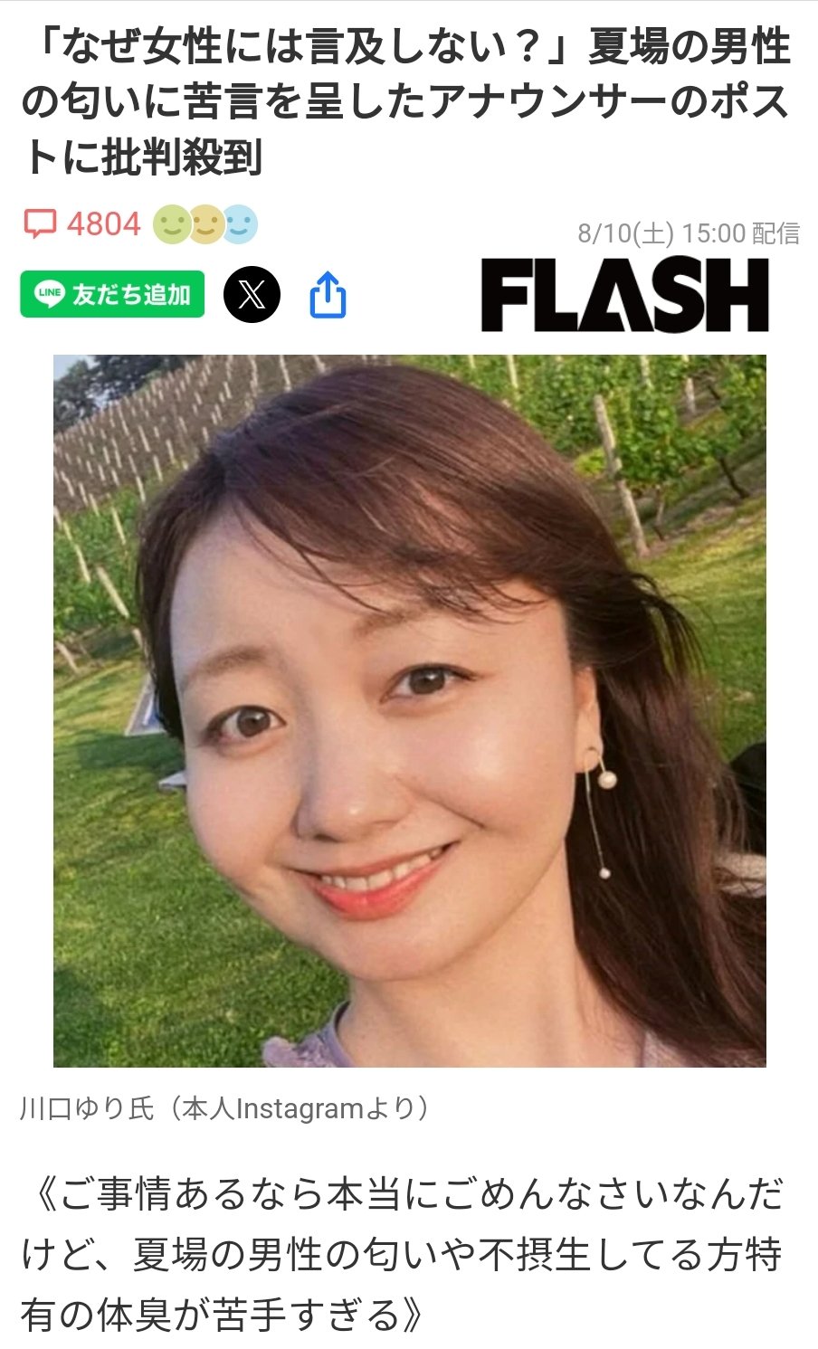 | … | 425/11/06(木)08:16:07No.1369914271そうだねx18夏場の男性は臭い |