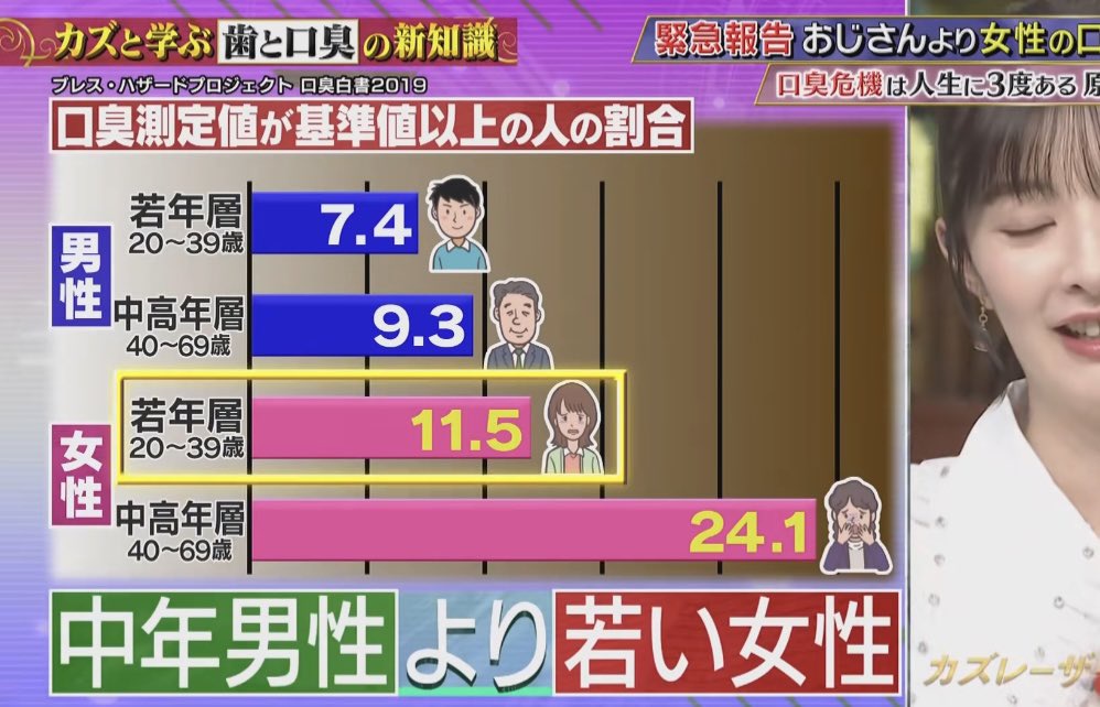 | … | 21625/11/06(木)10:07:30No.1369931251そうだねx1>じゃあ女性の方が口が臭いというデータは一体… |