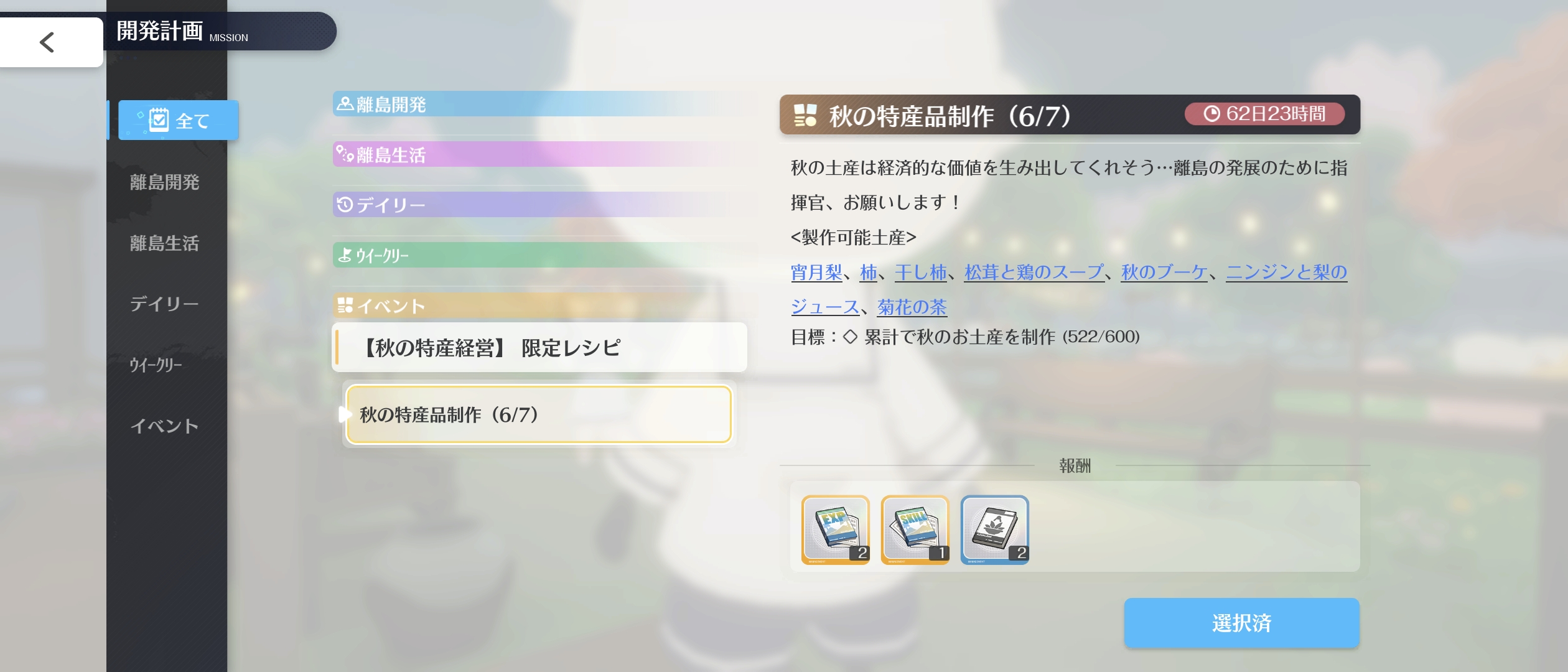 | … | 9125/11/06(木)12:26:41No.1369958163+>タダで手に入るシーズン素材加工してれば終わるから無駄に資金割く必要が無い |