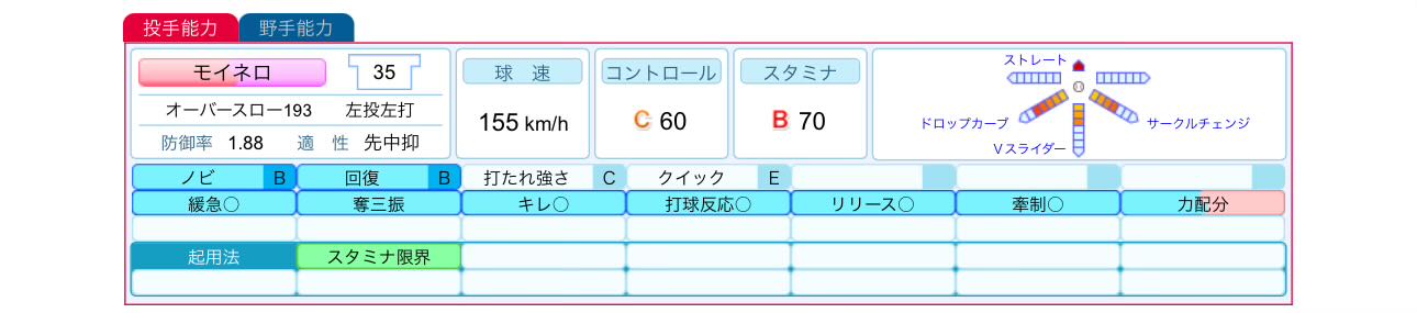 | … | 11125/11/06(木)14:32:19No.1369987782そうだねx1最近は現役投手は結構基礎ステータスは盛られにくい印象がある |