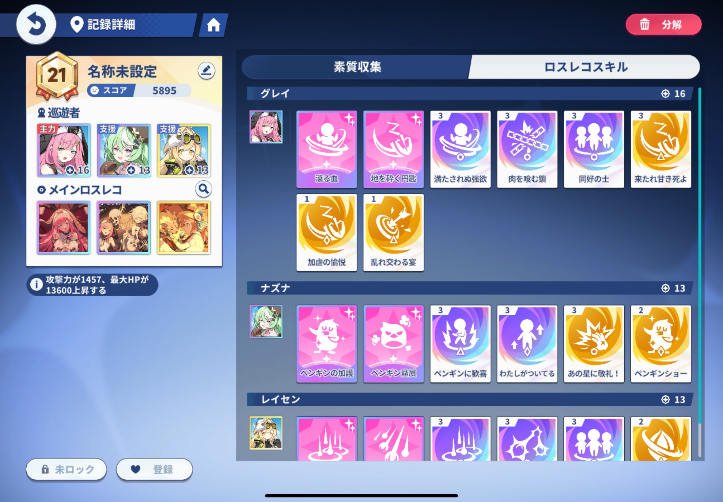 | … | 7325/11/06(木)14:46:44No.1369990410+シンプルにグレイとナズナどっち主力にするかで対応するロスレコ相性良いよって感じだと思うよ |