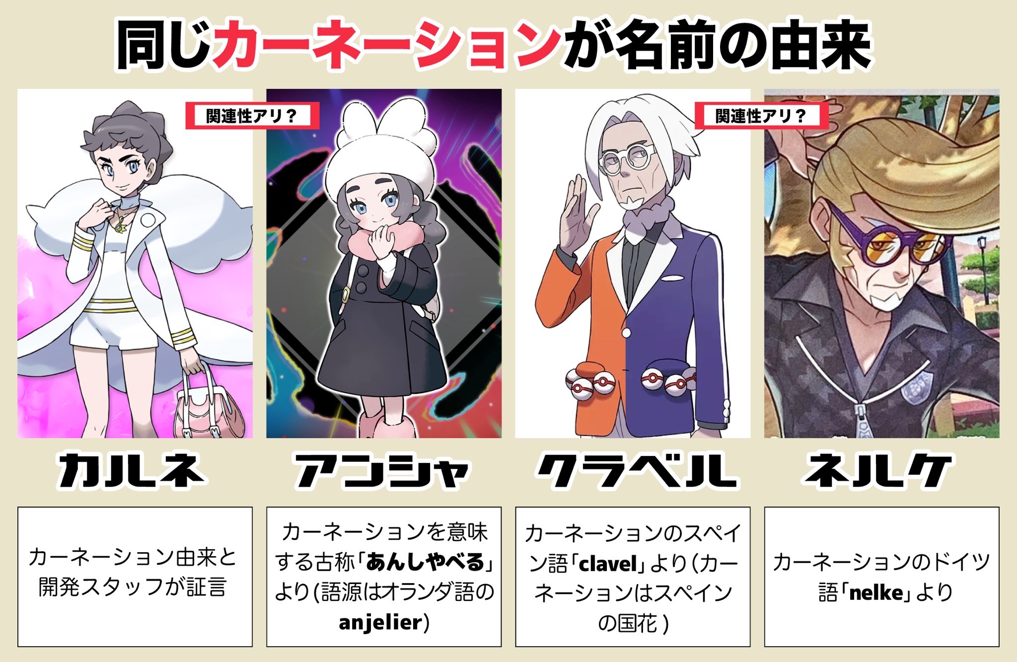 | … | 1825/11/07(金)14:56:38No.1370287525+>関連性なくてもおかしくはないがそれはそれとしてなんでクラベルの名前カーネーションにしたんだろうな |