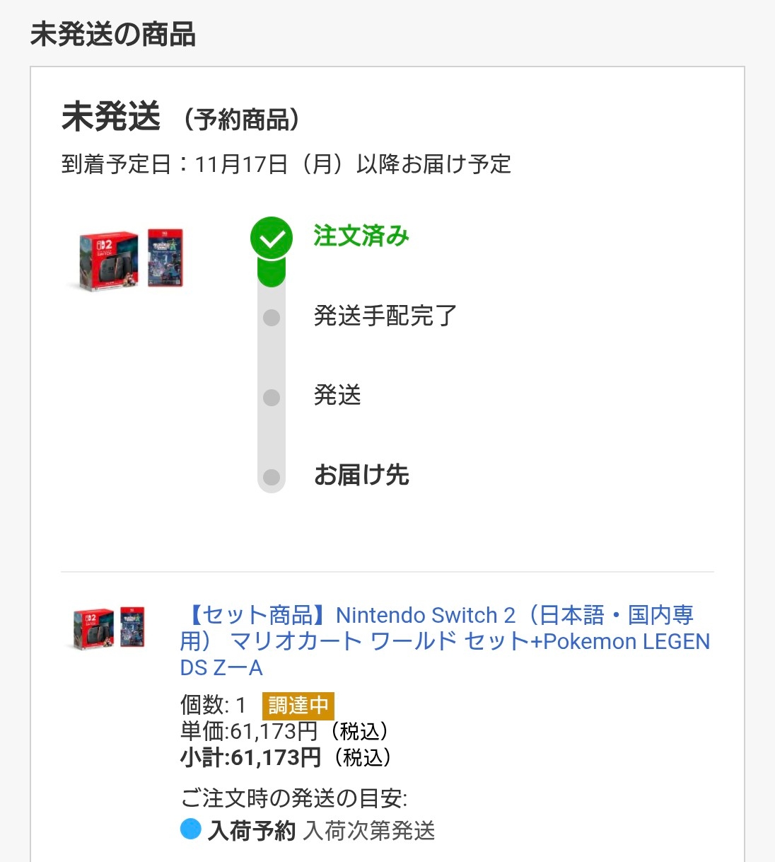 ポケモン同梱版は来てないぞ