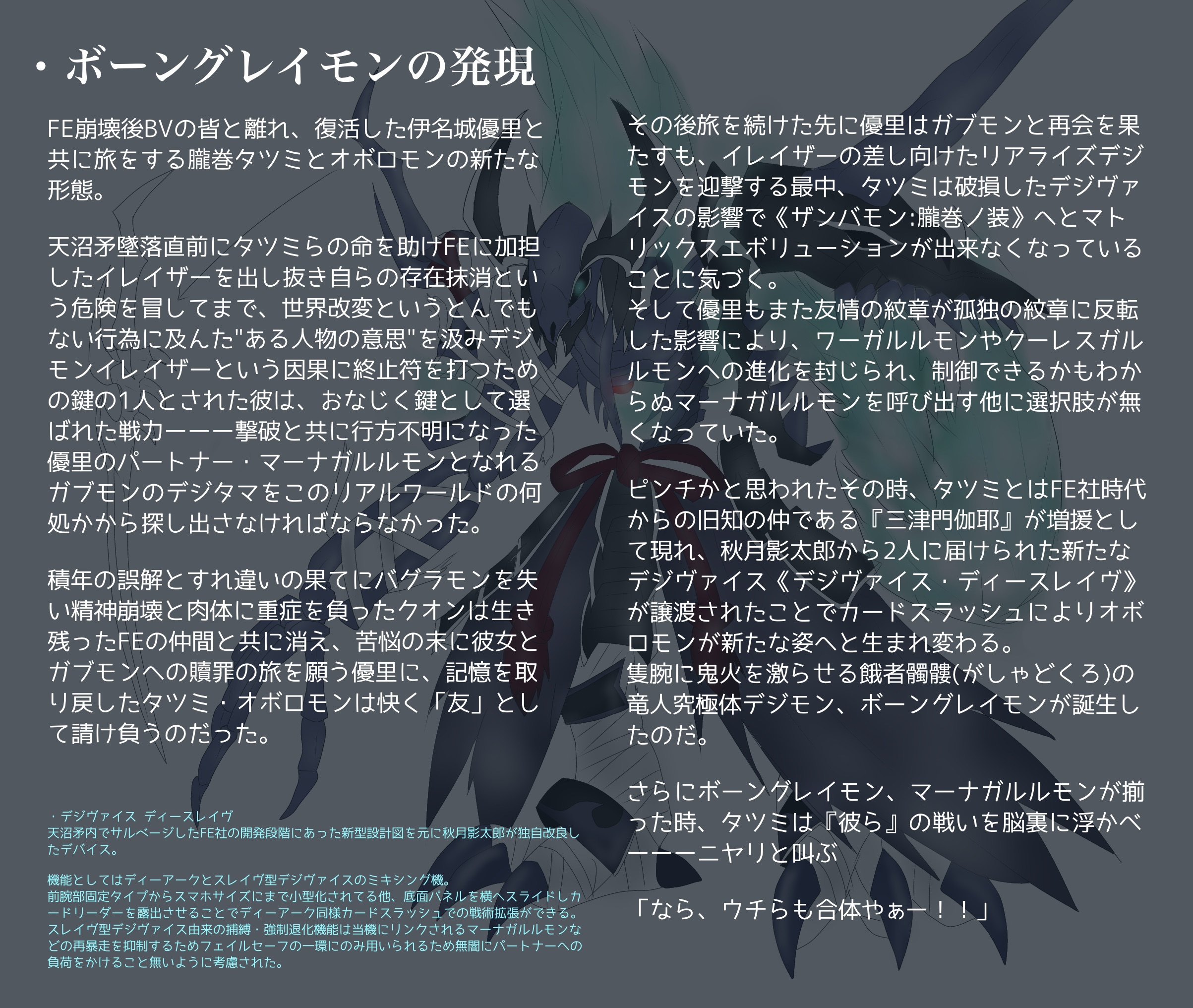 赤字ですね何度でも言います崩壊(改変)にお付き合いくださりありがとうございました……最初はマーナガルルモンごとダークエリアの底に自分ごと封印されて死ぬ予定だったのに生きてるよタツミ