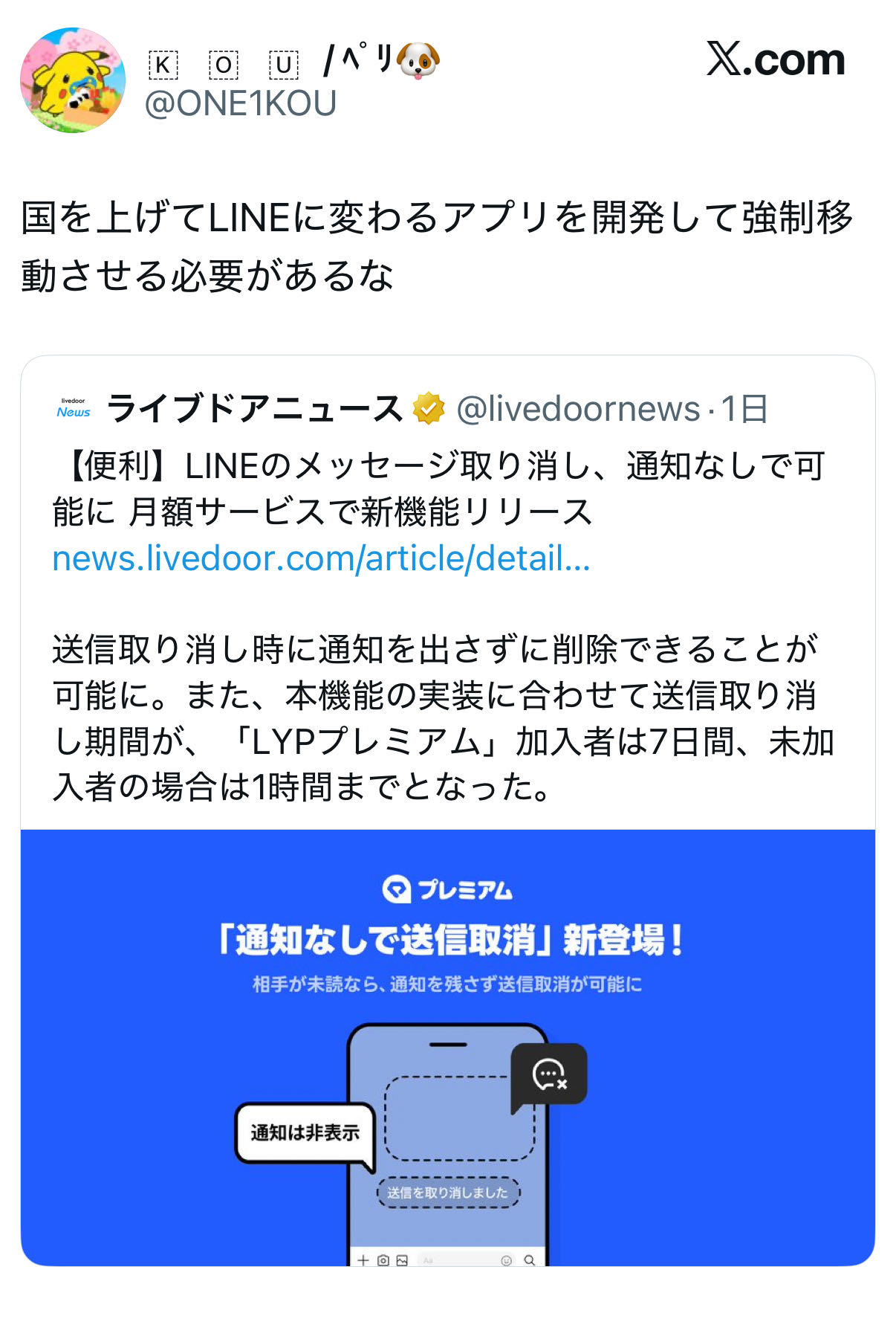 >>送信取り消しの通知なんて正直あってもなくてもいいからこれで騒いでるのLINE使ったことない奴なんだなって感じ