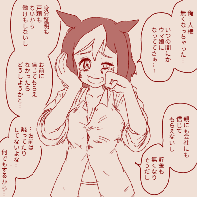 | … | 24525/11/09(日)15:02:46 ID:.UHjQsB.No.1370973973そうだねx12 1762668166608.png-(109545 B) ![]() >不思議な力でウマ娘にされた元ヒトが「人権無くなっちゃった…」って泣いてるおてがきください |
