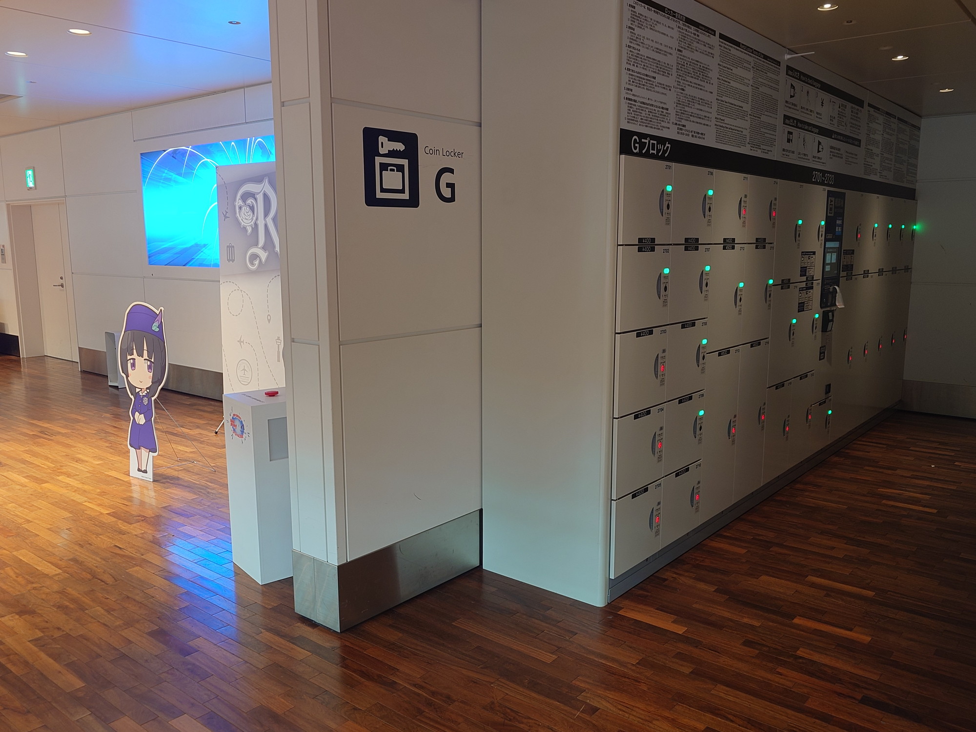 第2ターミナル3FのUPPERDECKTOKYO側 Gのコインロッカーの隣