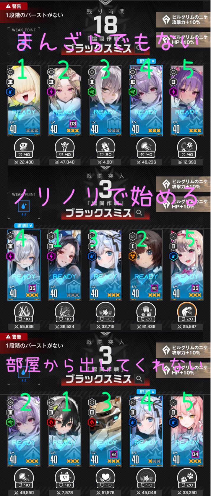 | … | 37125/11/10(月)00:15:29No.1371184281+クラゲもナユタもアリーナでそこまで…って思ったので他のニケにどんぐり回したけど |