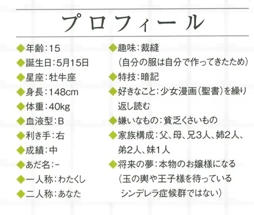 | … | 68125/11/10(月)16:43:18No.1371325841+>将来の夢:本物のお嬢様になる(玉の輿や王子様を待っているシンデレラ症候群ではない) |