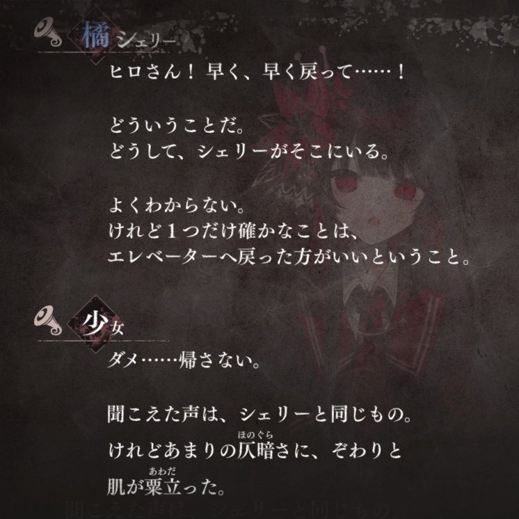 | … | 1225/11/10(月)14:30:06No.1371299462そうだねx7>シェリー行方不明エンドと心中数えるとキルスコアが6くらいあるガール |