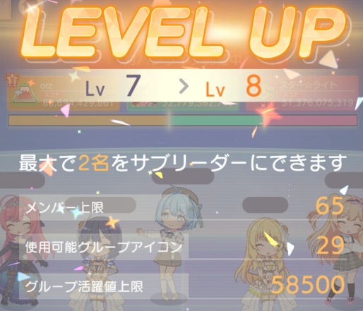 あとグループLv8になってましたね!おめでとうございます!