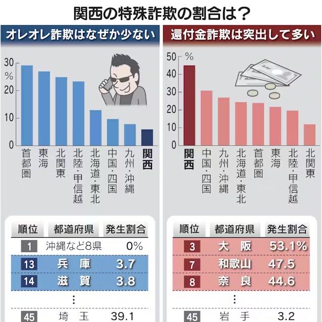 方言によるオレオレ詐欺の少なさを考慮しても還付金詐欺の多さは大分突出してるしまあそうなんだろうな…