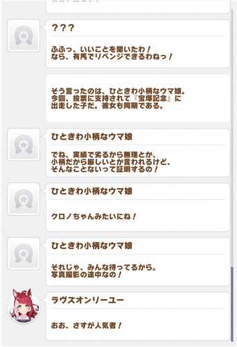 | … | 70125/11/13(木)19:55:57No.1372282458そうだねx4>悪いように言うと「おたくの馬を擬人化して金儲けに使わせてください!」ってゲームだからまあ馬主的に慎重になって当然だよ |