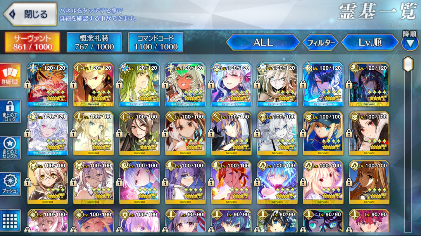 | … | 4325/11/13(木)21:16:46 ID:sIOJKs9INo.1372312039+できるだけ配布と低レアを120にしてグランドに据えてるけどそろそろ聖杯がヤバい |