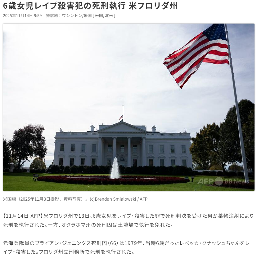 アメリカでロリコンが死刑執行された