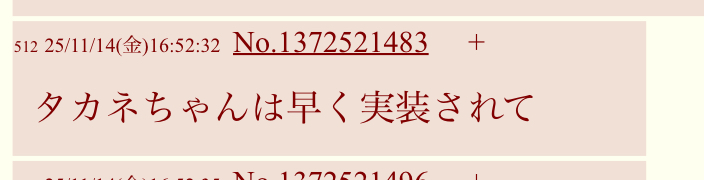 | … | 1125/11/14(金)17:15:59No.1372526632+朝アニメで出てきそうなタカネ |