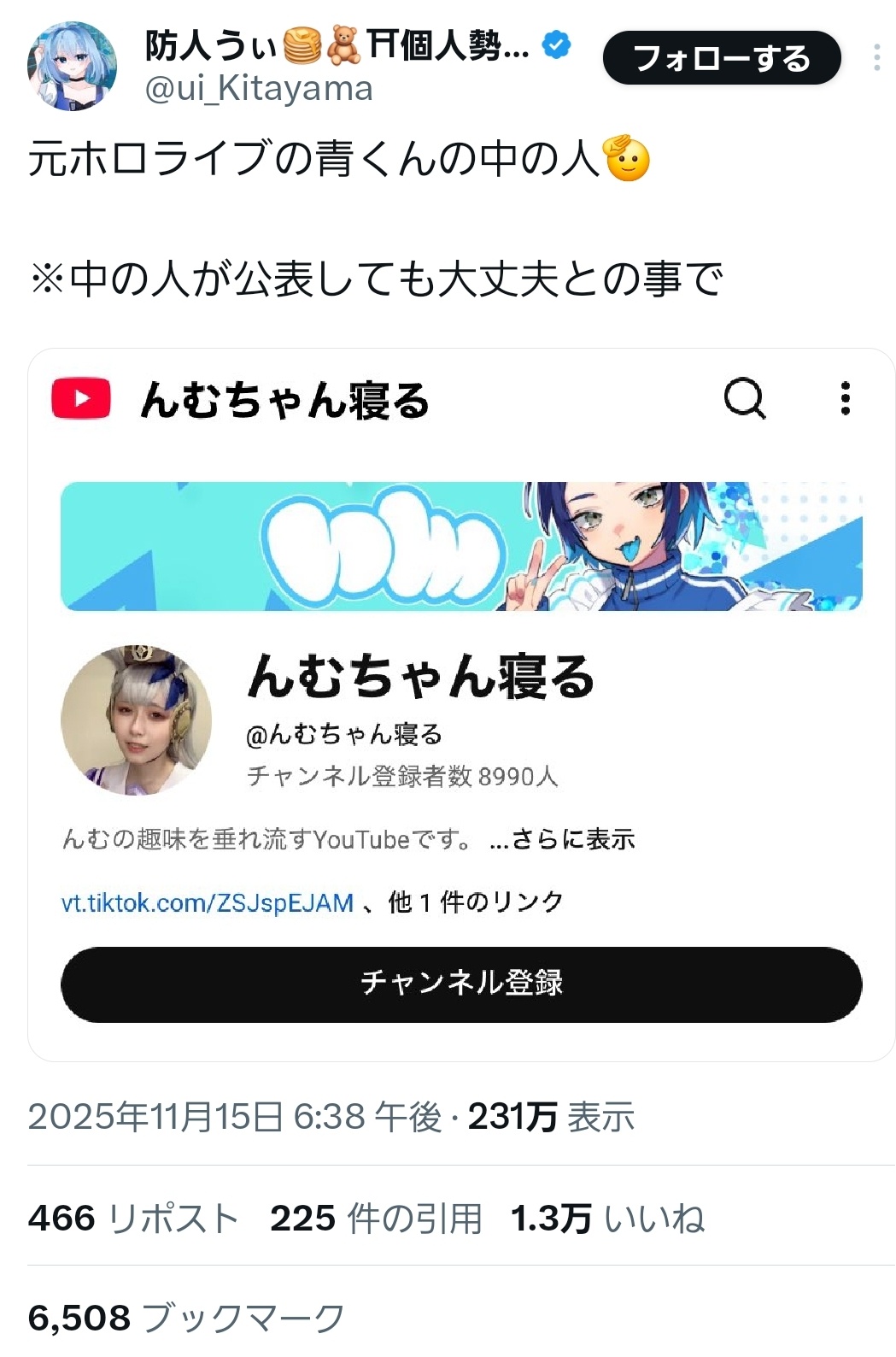 | … | 225/11/16(日)21:59:39No.1373321925そうだねx23スレ画は成りすましアカウントじゃなくてこの人は元ホロっていうデマを拡散してるアカウントじゃない? |