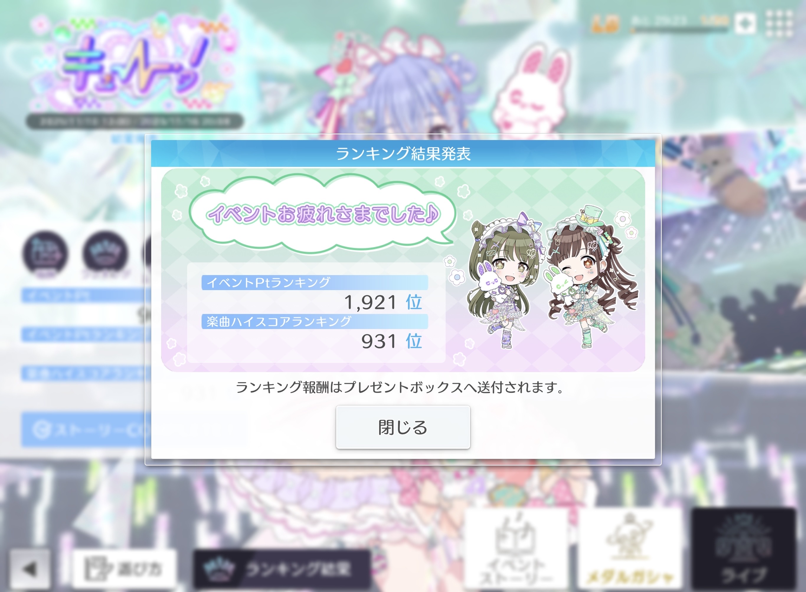 | … | 8425/11/17(月)13:52:54No.1373474073+カウントダウンラブ系統の曲もかなり好きだから今後何回かイベントやってね |