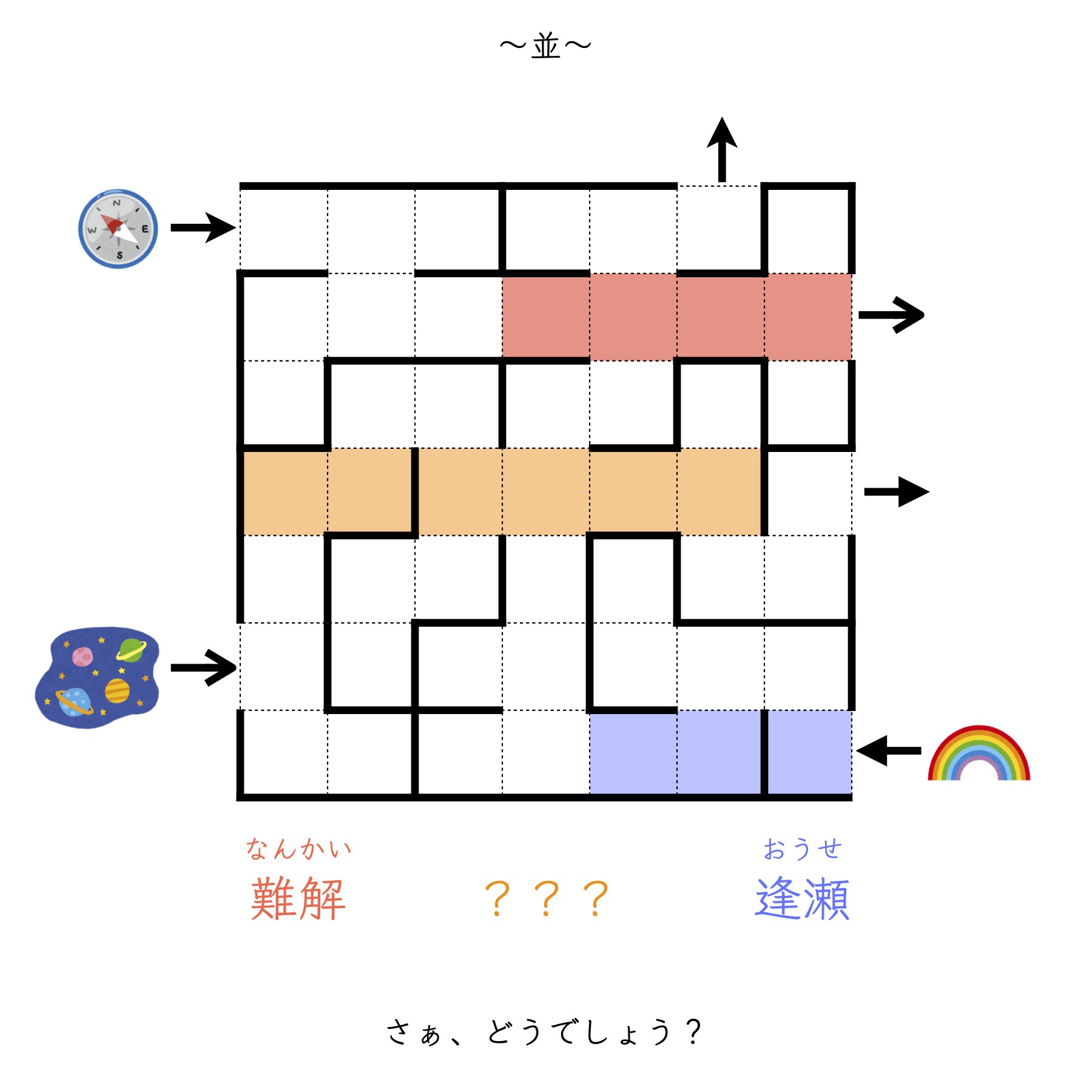| … | 825/11/17(月)18:19:25No.1373531235そうだねx3どの矢印がどの矢印に抜けるか対応させておくべきだろこの問題は |