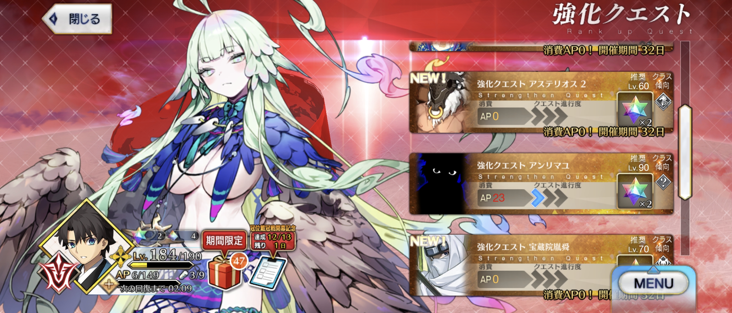 強化クエストはまだまだ出るけど鯖そんなにいないからあんまりなくてこれもまたにくいよぉ…