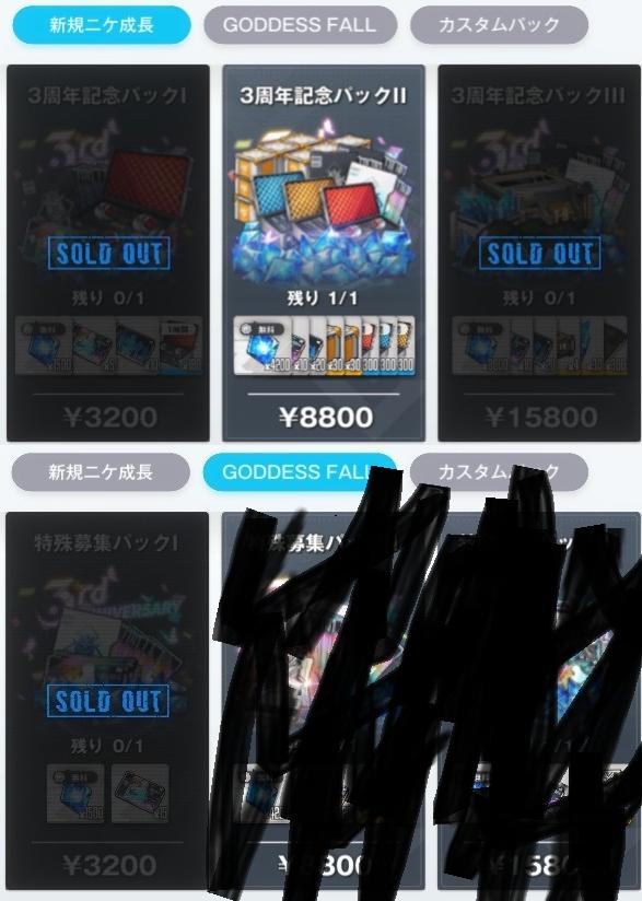 | … | 3625/11/18(火)20:34:23No.1373890190+最近始めたんだけどこの3周年記念パックは買っといた方がいいやつある? |