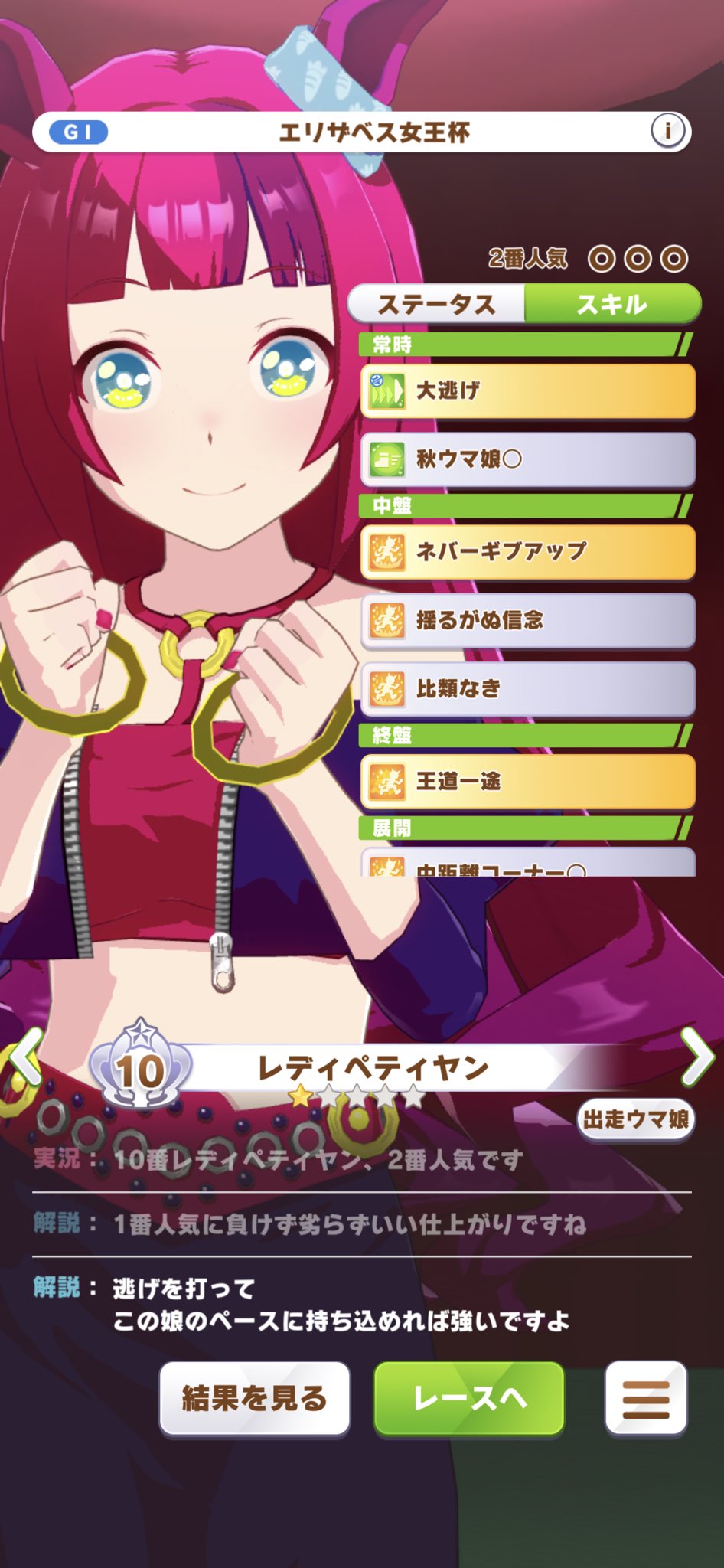 | … | 5225/11/19(水)13:11:59No.1374086579そうだねx3クィーンスプマンテはグリーンの馬なので実装される可能性は無ではないんですよねぇ 問題はグリーンに入るような人間はまずウマ娘やってなさそうってことですが… |