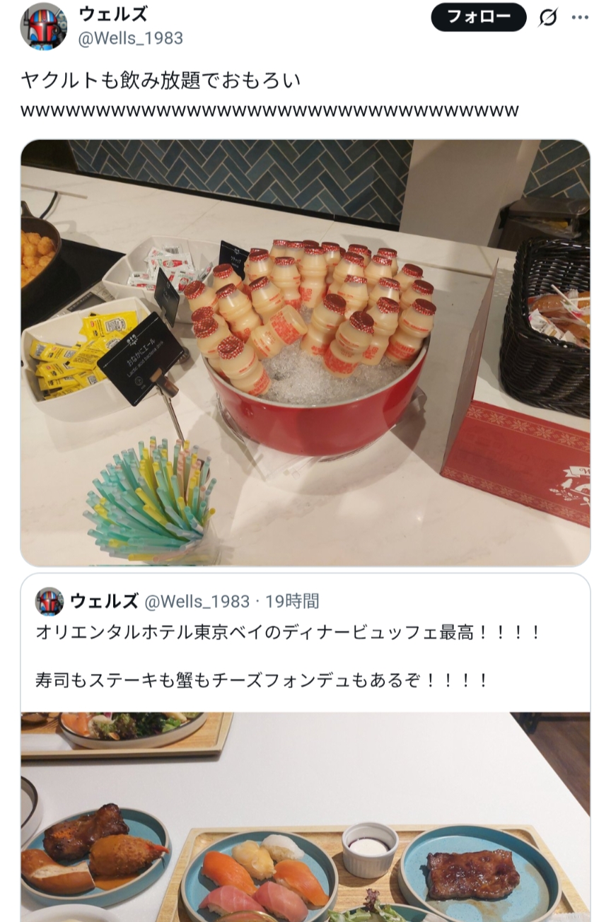 | … | 525/11/22(土)14:20:10No.1375034609そうだねx4ジェネリックヤクルトじゃんオリエンタルホテル東京ベイなのに |
