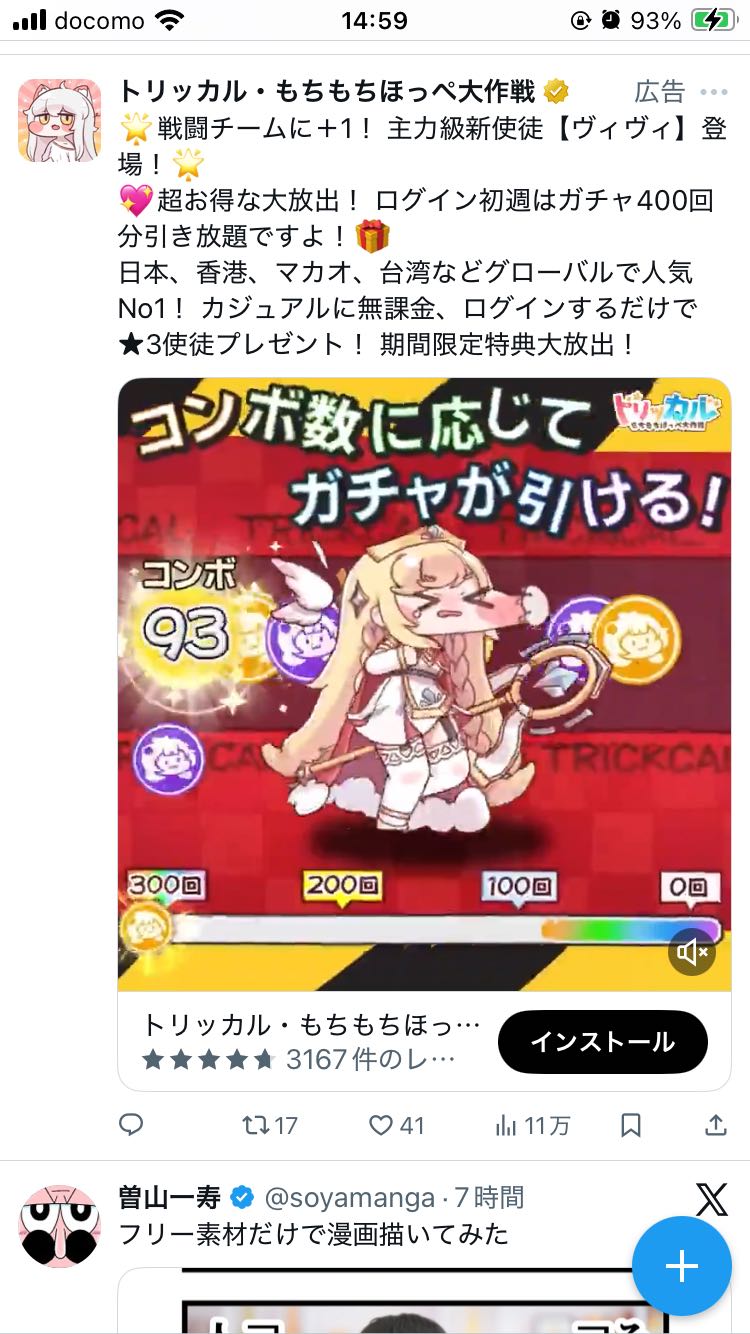 | … | 44725/11/22(土)15:08:28 ID:CcCJQTUsNo.1375048497そうだねx1トリッカルの広告…怪しい中華ソシャゲのようです… |