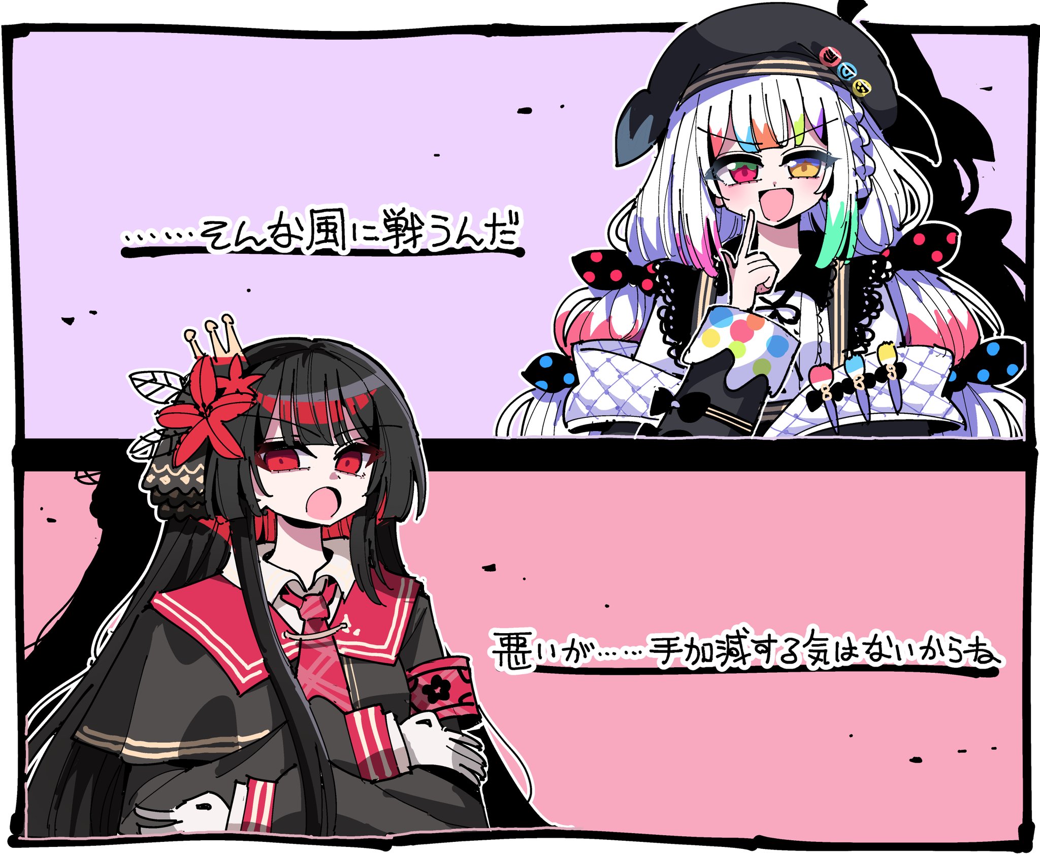 | … | 7725/11/22(土)19:23:40No.1375125098+>エマは違和感突くのに特化しててヒロは偽証でも魔法でもなんでも使って相手崩すのが得意なのいいよね |