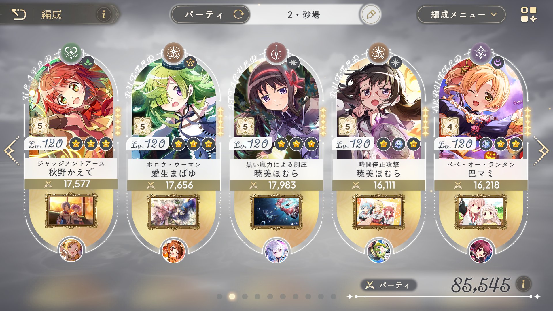 | … | 21325/11/23(日)01:29:12No.1375258276+暇だからういちゃんのあきら花のスピード+3になってた所を+4になるまで頑張ってたら対人でメガほむの戦闘スキル使った時点で月咲ちゃんよりもういちゃんの方が先に行動してしまう状態になってしまったの… |